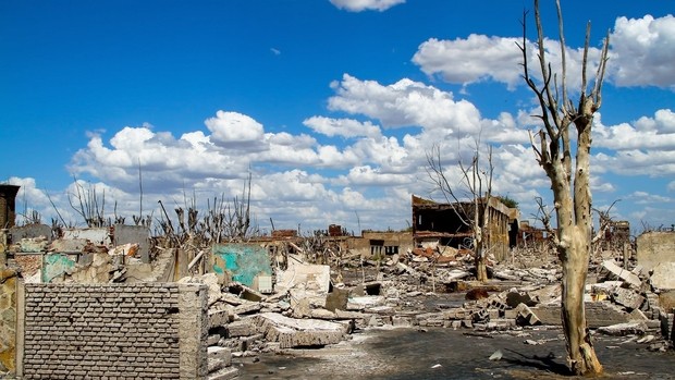 En l’espace de 15 jours, la ville est quasiment recouverte de cette eau salée qui cristallise, blanchit et pétrifie les bâtiments et les arbres survivants. S’il n’y a pas eu de morts lors de cette inondation, les dommages matériels sont, eux, colossaux. Engloutie sous environ 7 mètres d’eau, Epecuen disparaît pendant plusieurs années de la surface de la terre. Une dizaine d’années plus tard, une importante vague de sécheresse sort Epecuen des eaux. On (re)découvre alors cette ville, figée dans un décor quasi lunaire. Les bâtiments, en ruine, sont les derniers témoins de cette époque glorieuse dont il est difficile de déceler les traces aujourd’hui. Les arbres sont secs et les maisons sont vides ; Epecuen est devenue une ville fantôme qui reçoit de temps en temps la visite de quelques voyageurs, curieux de connaître l’histoire de cette ville qui a resurgi des eaux !